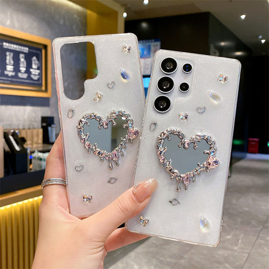 Rhinestone Heart Mirror Phone Case For Samsung Galaxy