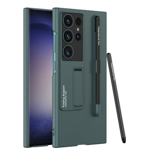Frosted Invisible Bracket Protective Phone Case With Pen Box & Stylus For Samsung Galaxy S24 S23 Ultra Plus