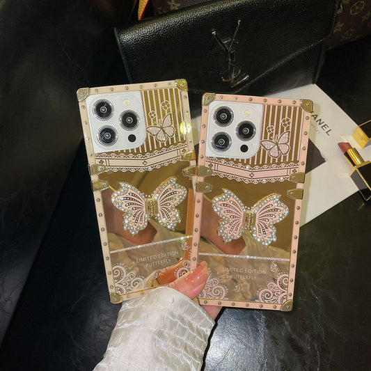 Luxury Gold Mirror Butterfly Bracket Square iPhone Case