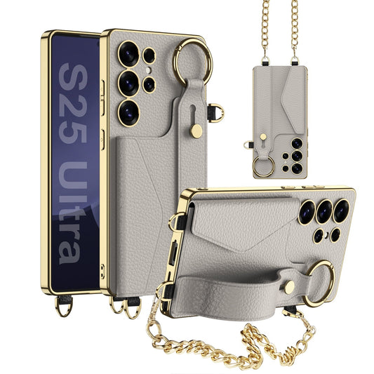 Electroplated Leather Wristband Card Holder Wallet Case for Samsung Galaxy