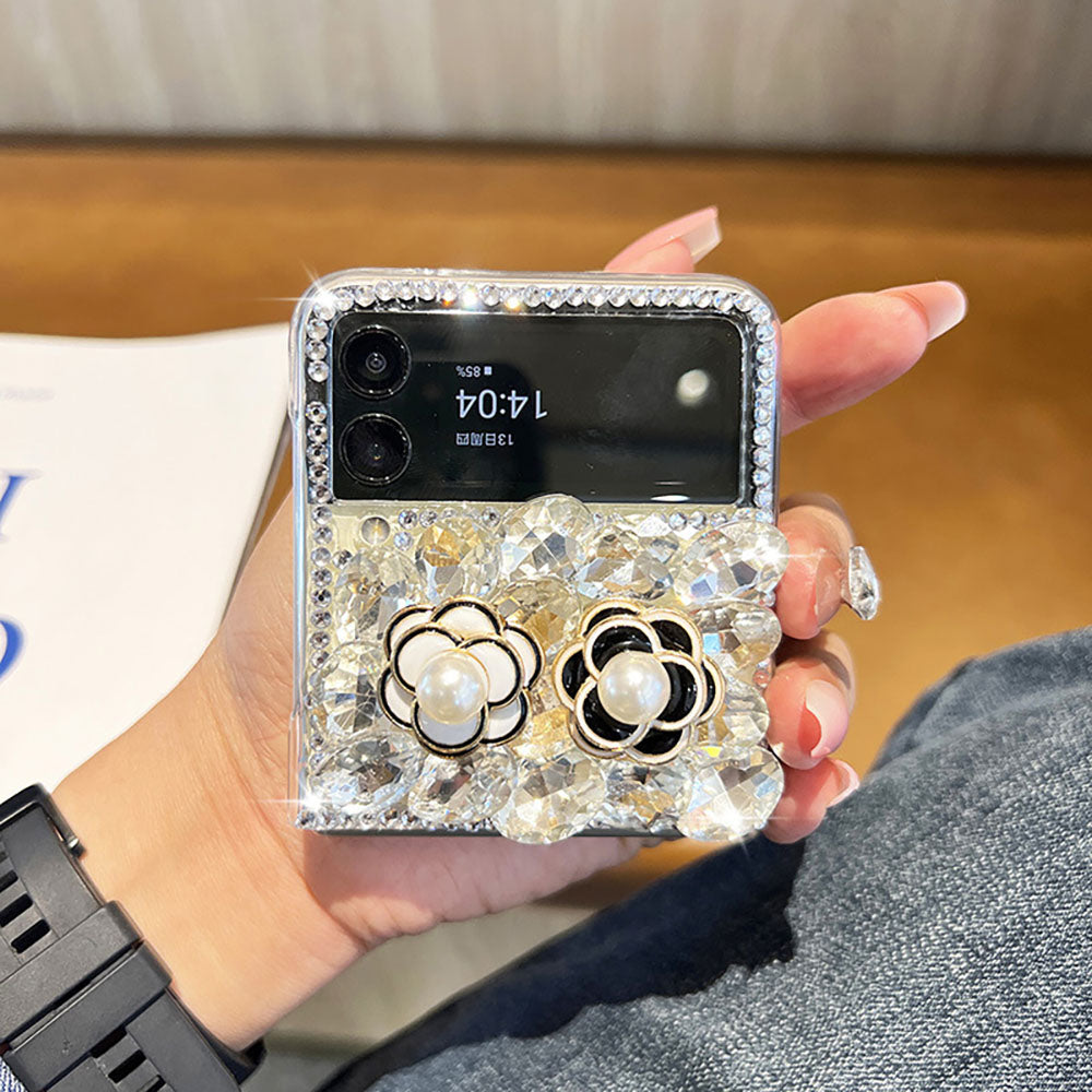 Camellia Sparkling Rhinestone Phone Case For Samsung Galaxy Flip4 Flip3