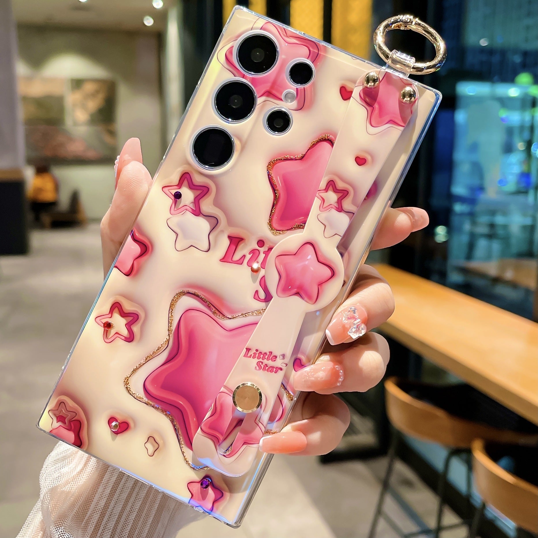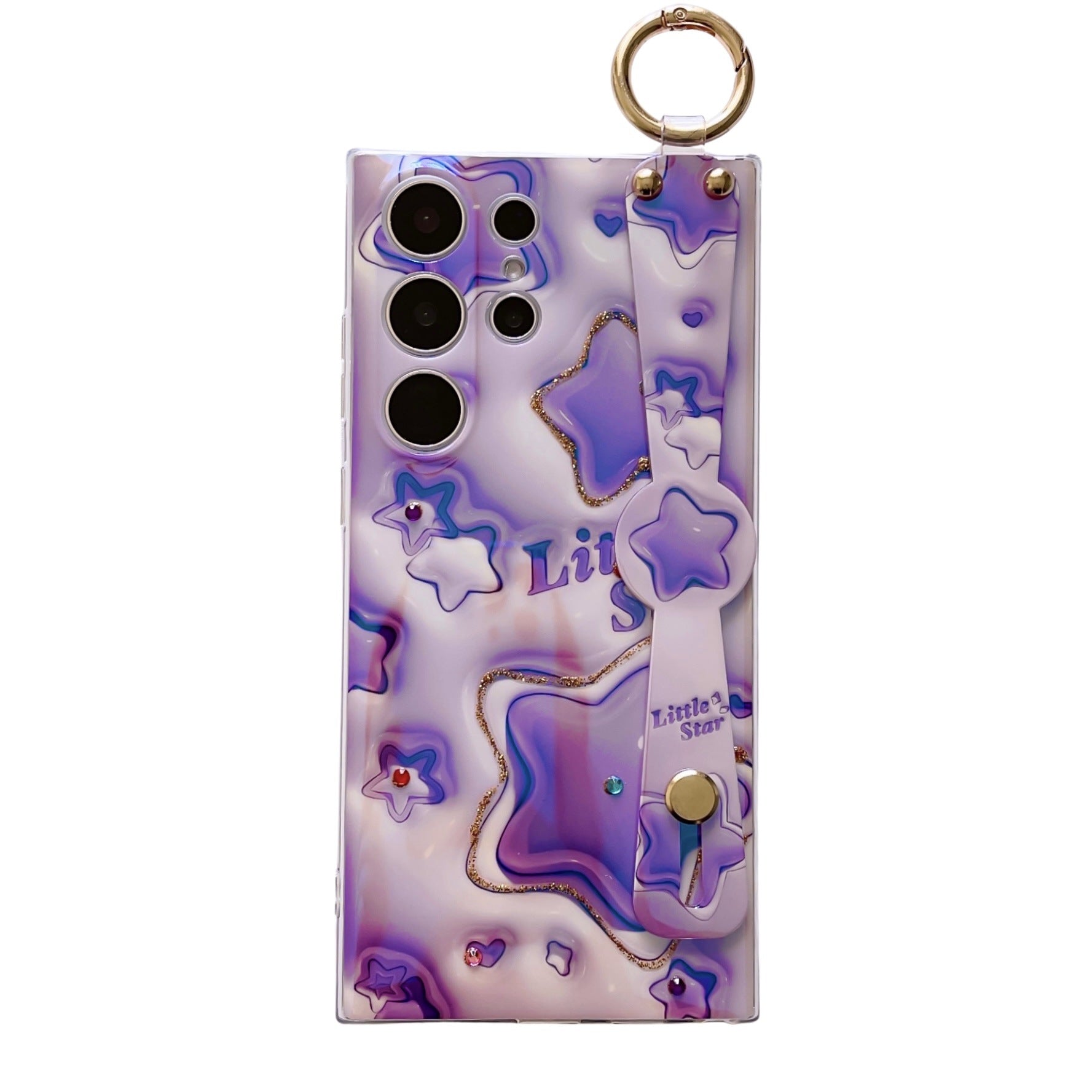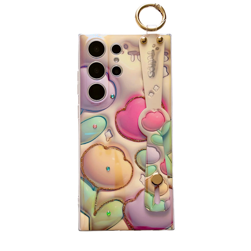Glitter Blue Light 3D Tulips Case for Samsung Galaxy S23 S23Ultra S23Plus Soft Silicone With Wrist Strap Support Stand Shell