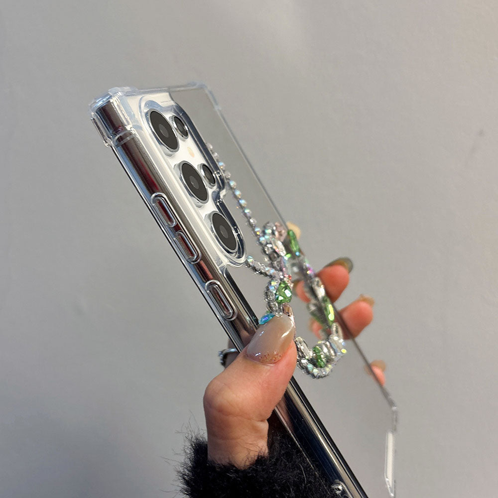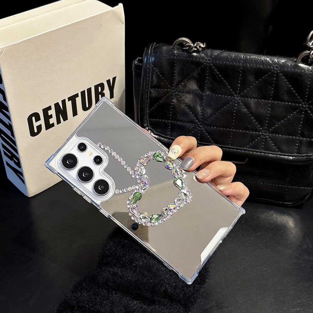 Handmade Heart Rhinestone Acrylic Mirror Phone Case For Samsung Galaxy