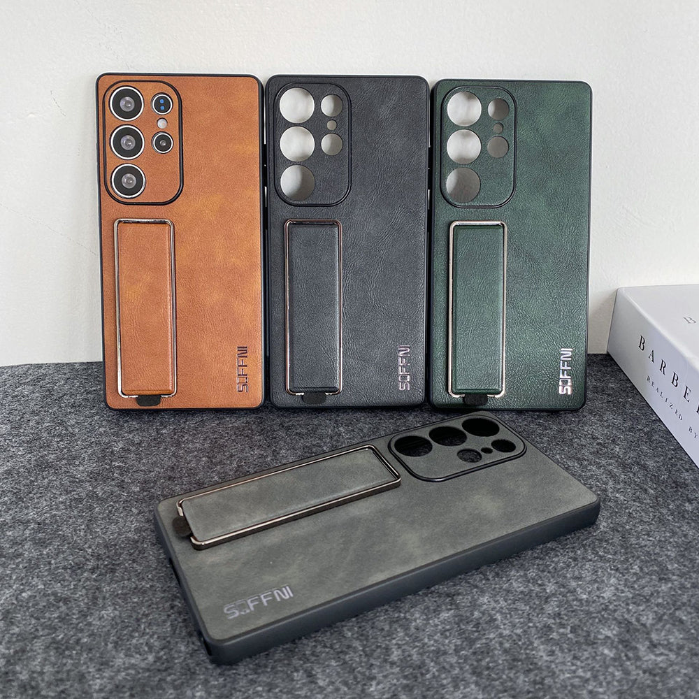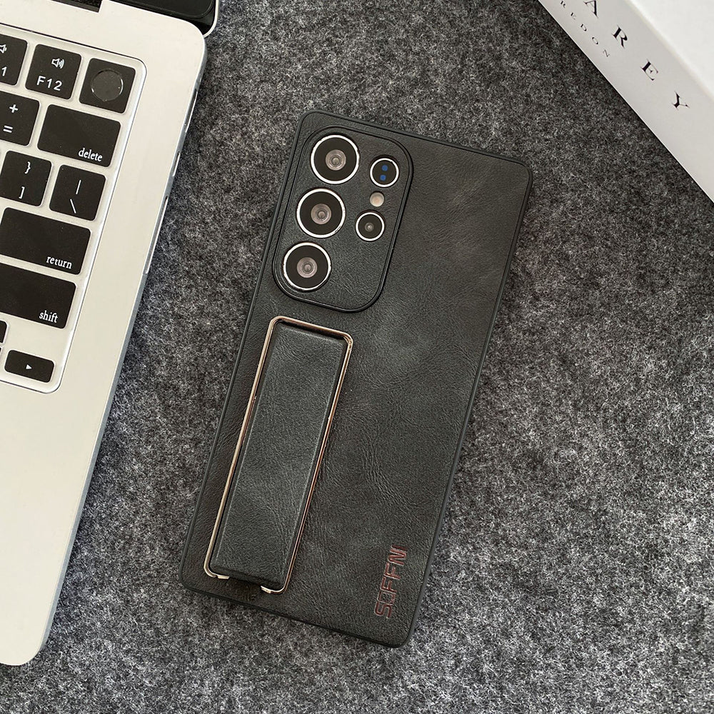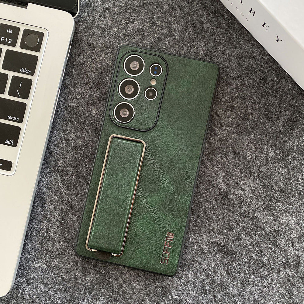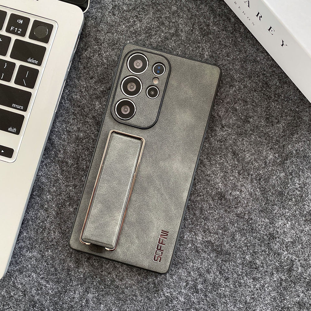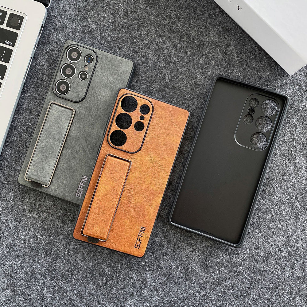 Litchi Texture Plain Leather Retro Fashion Wristband Phone Case For Samsung Galaxy