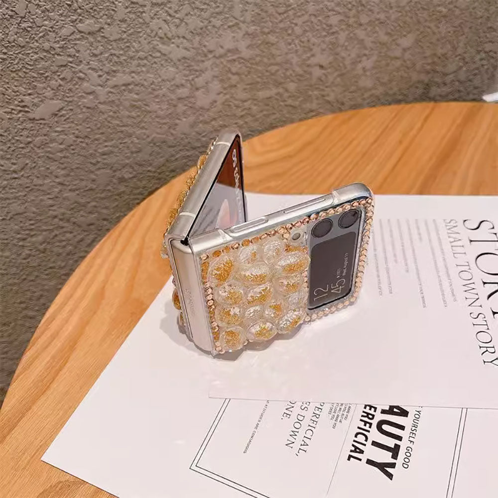 Luxurious Diamond Gold Leaf Phone Case For Samsung Galaxy Flip5 Flip4 Flip3