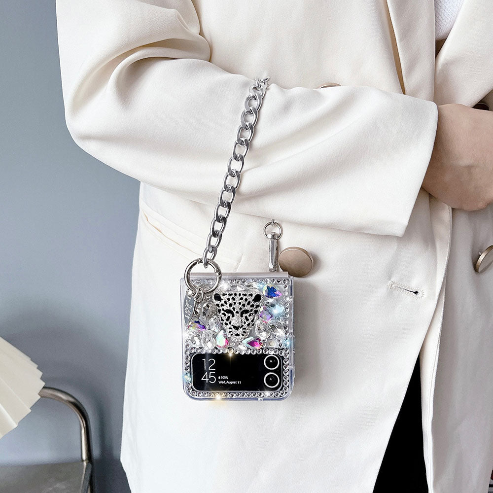 Luxurious Rhinestone Leopard Bracelet Phone Case For Samsung Galaxy Z Flip4 Flip3 5G