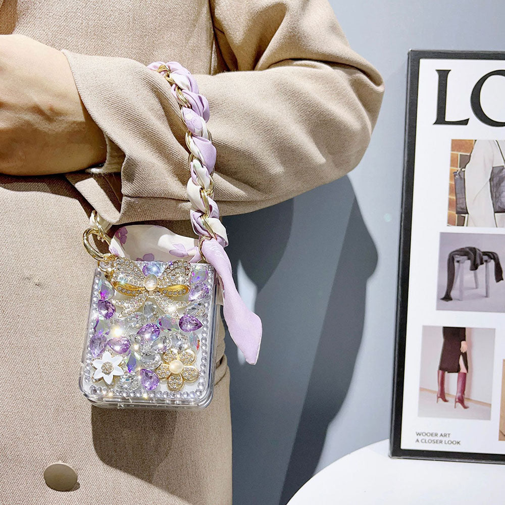 Luxurious Rhinestone Rainbow Bracelet Phone Case For Samsung Galaxy Z Flip4 Flip3 5G