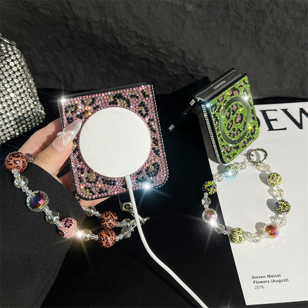 Luxury Diamond Leopard Print Magnetic Phone Case For Samsung Galaxy Z Flip 6/5/4/3
