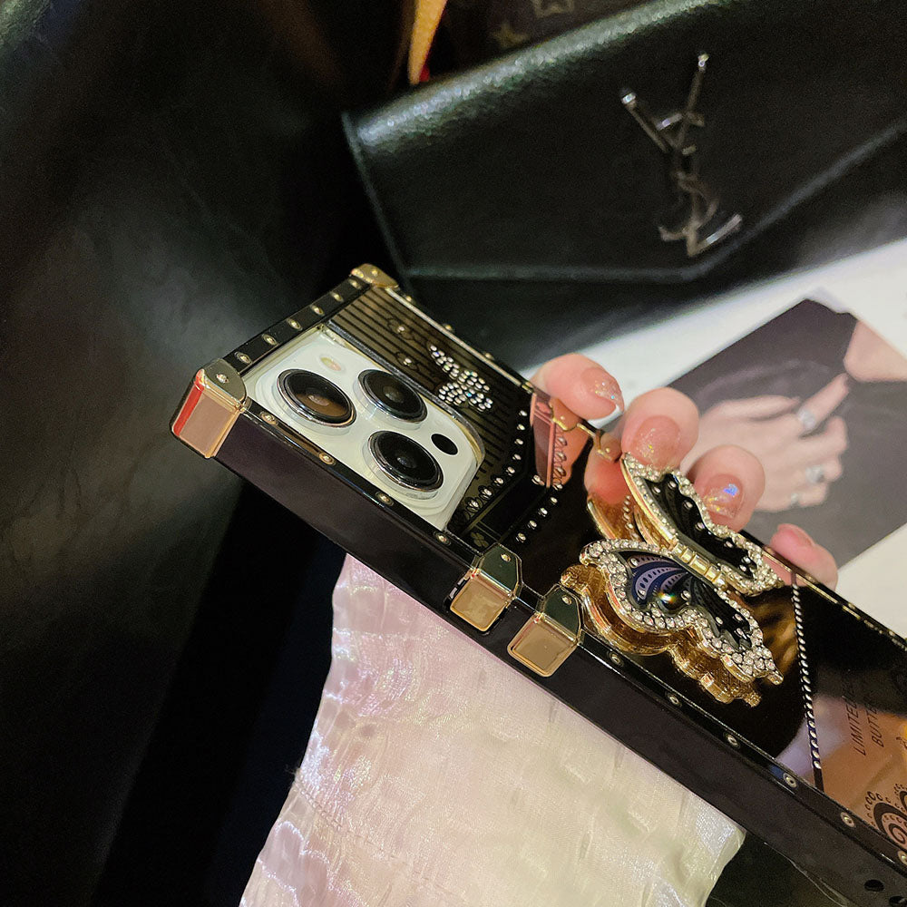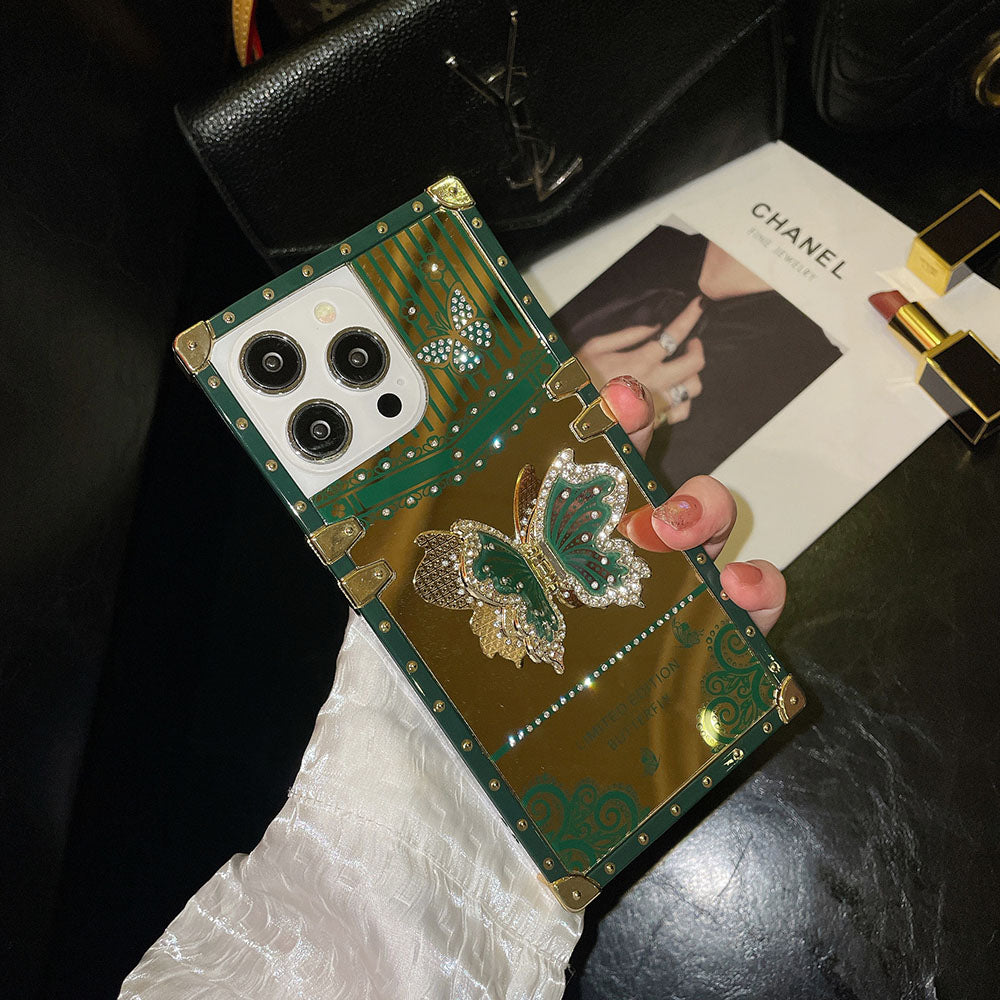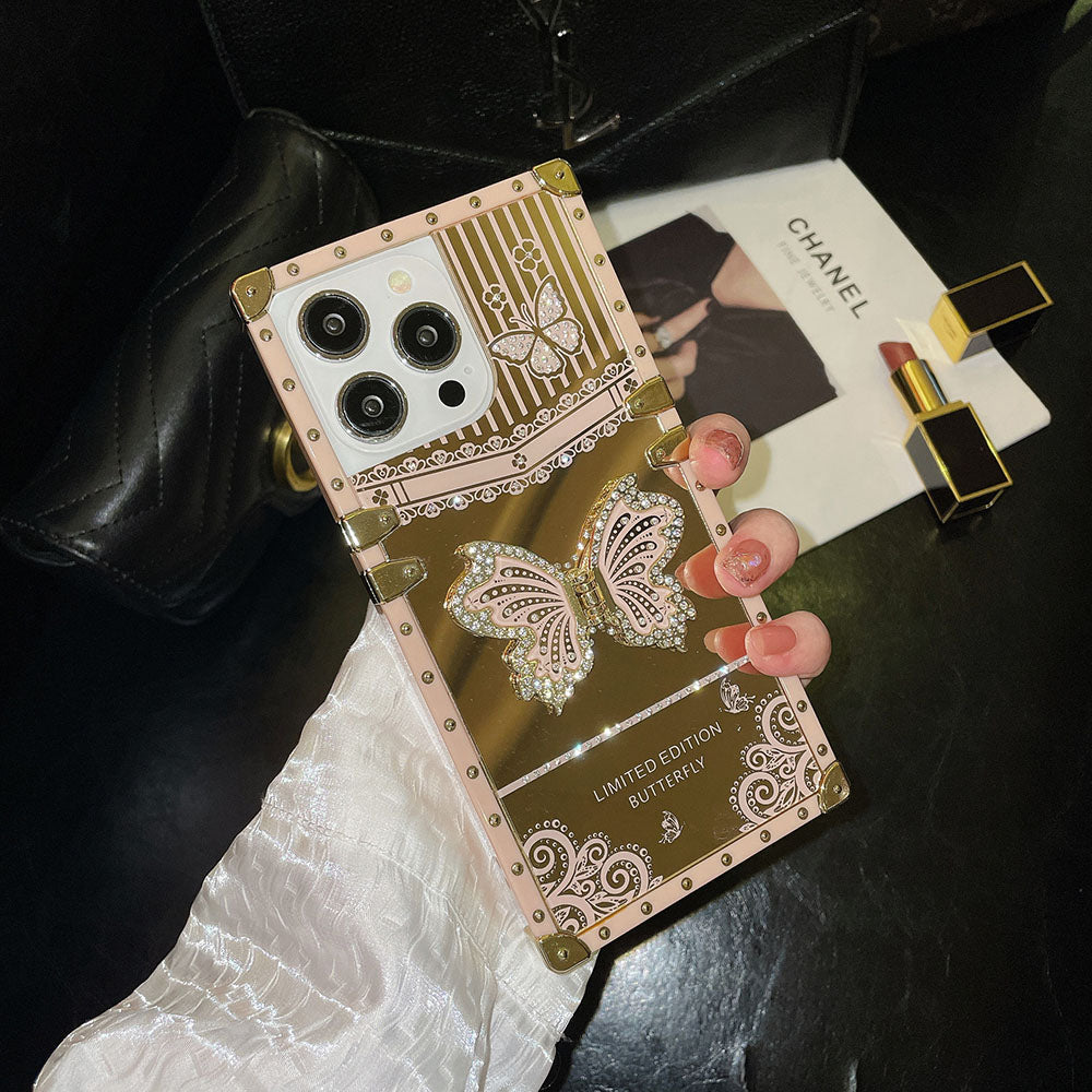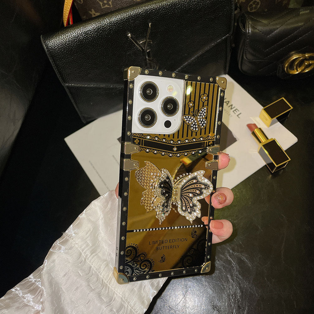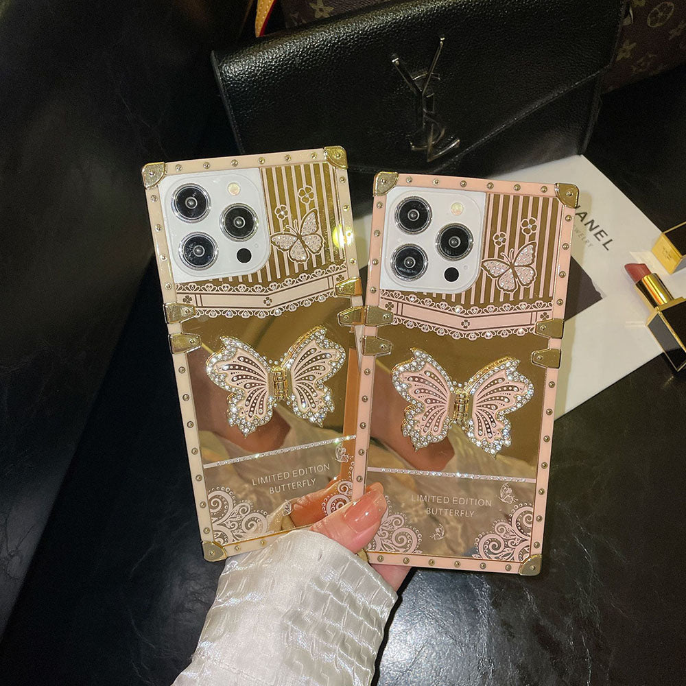 giftjupiter | Luxury Gold Mirror Butterfly Bracket Square iPhone Case