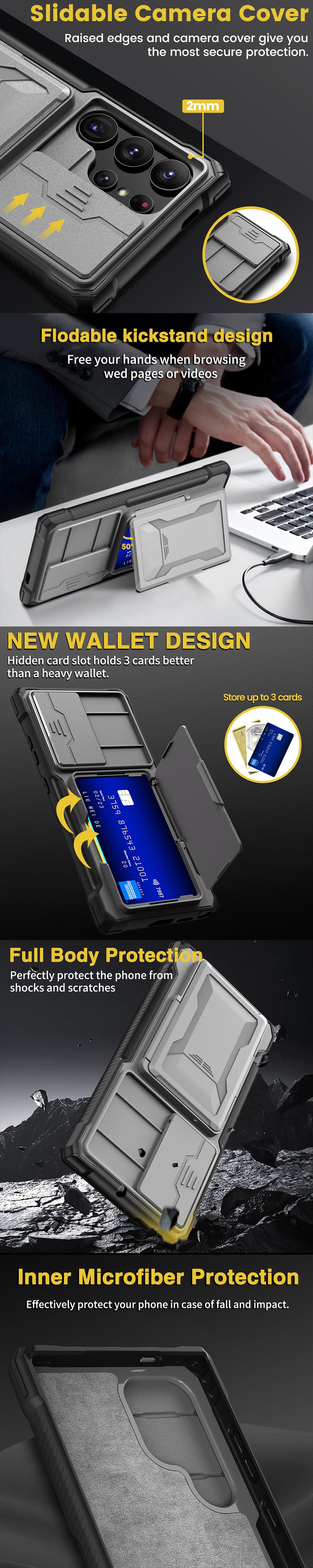 Mecha Style Lens Push Window All-Round Protection Card Holder Holder Anti-Fall Phone Case For Samsung Galaxy S24Ultra