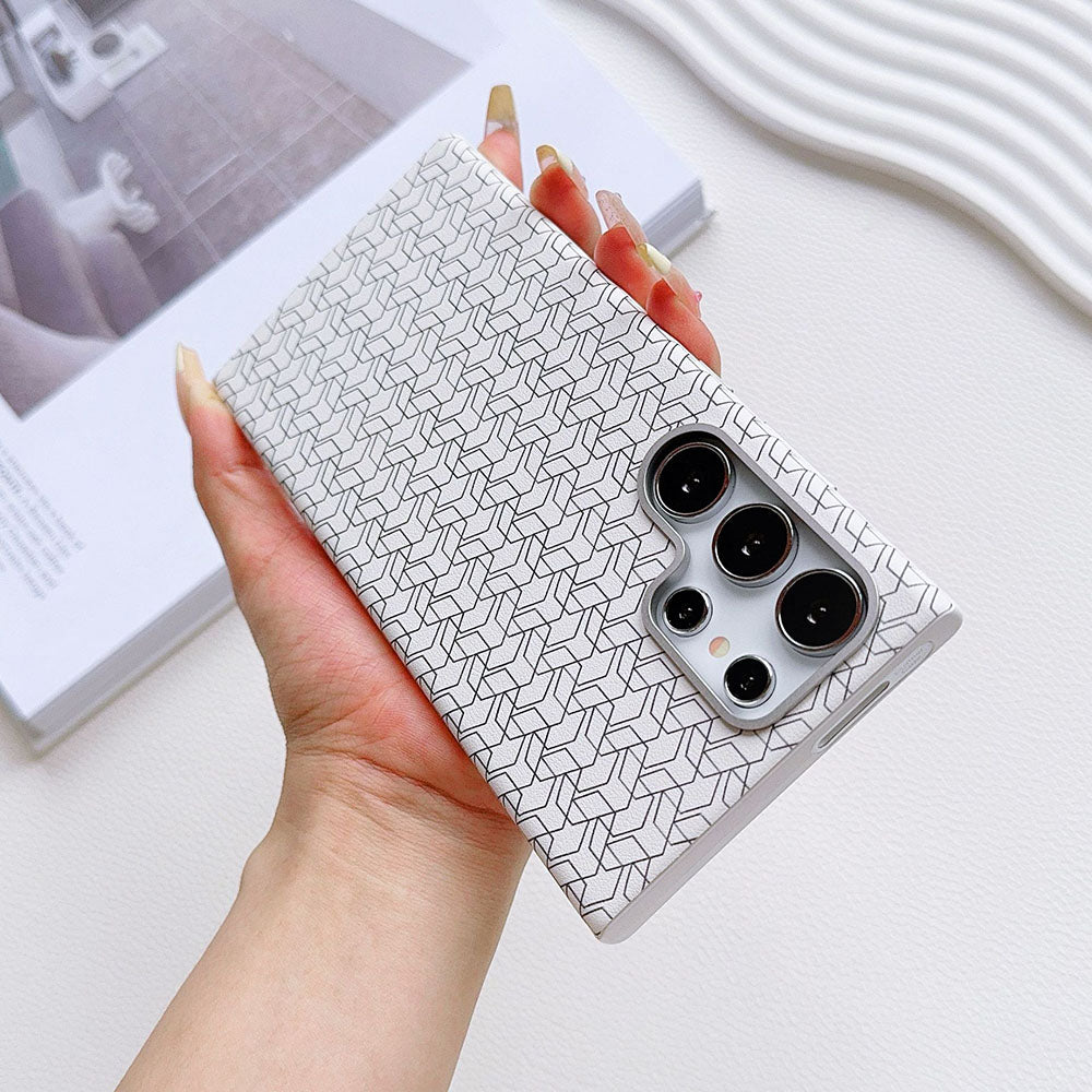 Metal Lens Frame Colored Leather Texture Phone Case For Samsung Galaxy