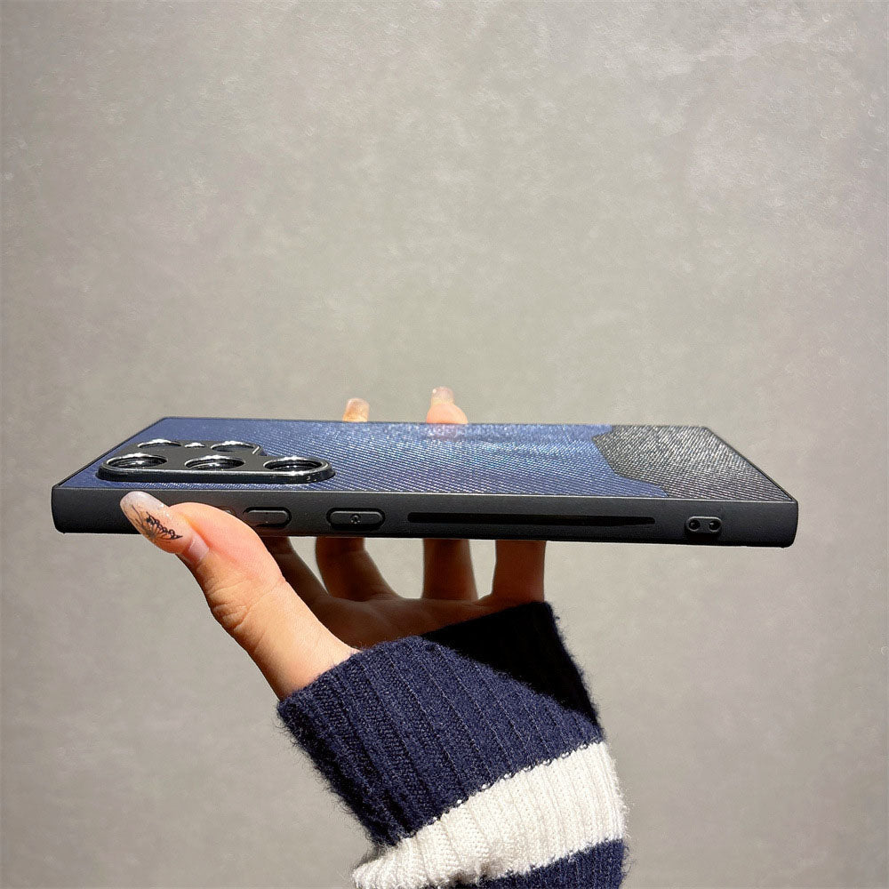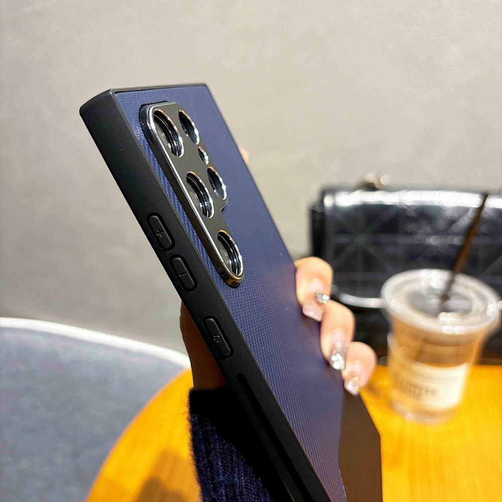 Metal Lens Protection Leather Color Block Phone Case For Samsung Galaxy