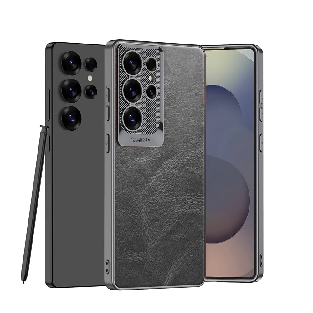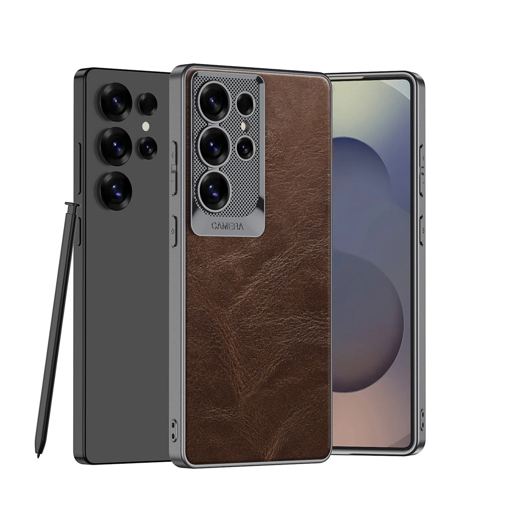 Metal Lens Protection Shockproof Leather Case for Galaxy S25 Ultra
