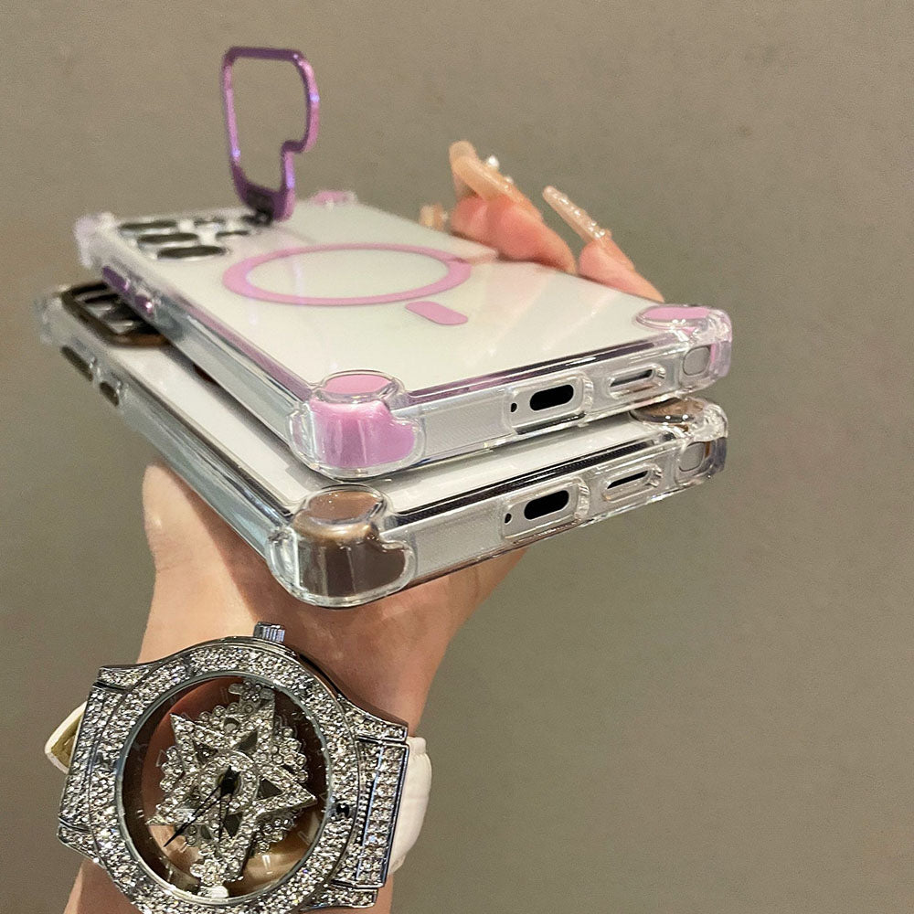 Metal Magnetic Lens Protection Bracket Transparent Phone Case For Samsung Galaxy