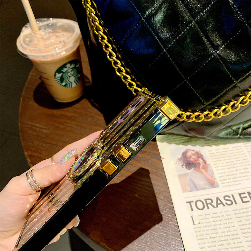 Newest Luxury Brand Black Rose Flower Stripe Glitter Gold Square For Samsung Galaxy